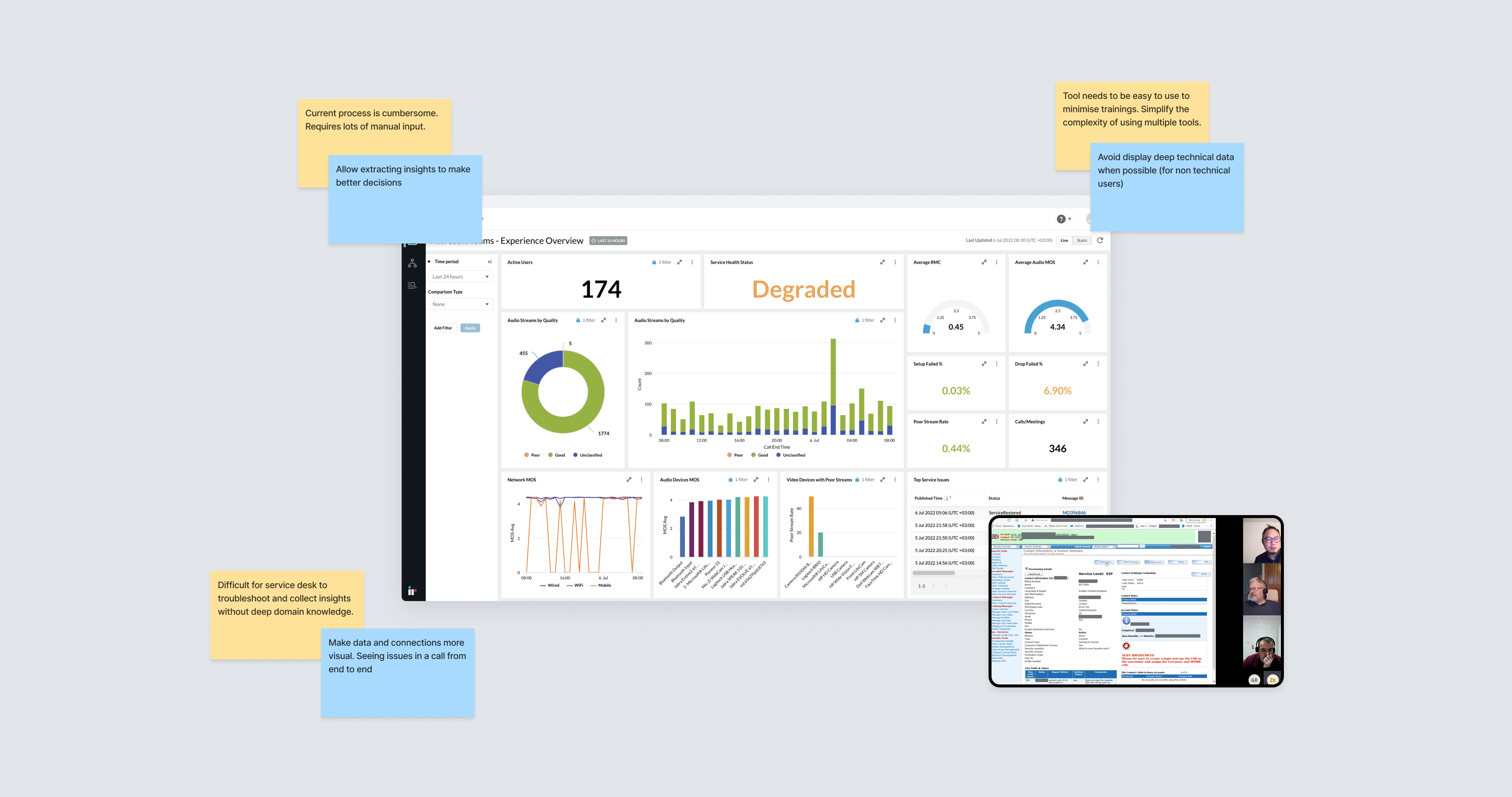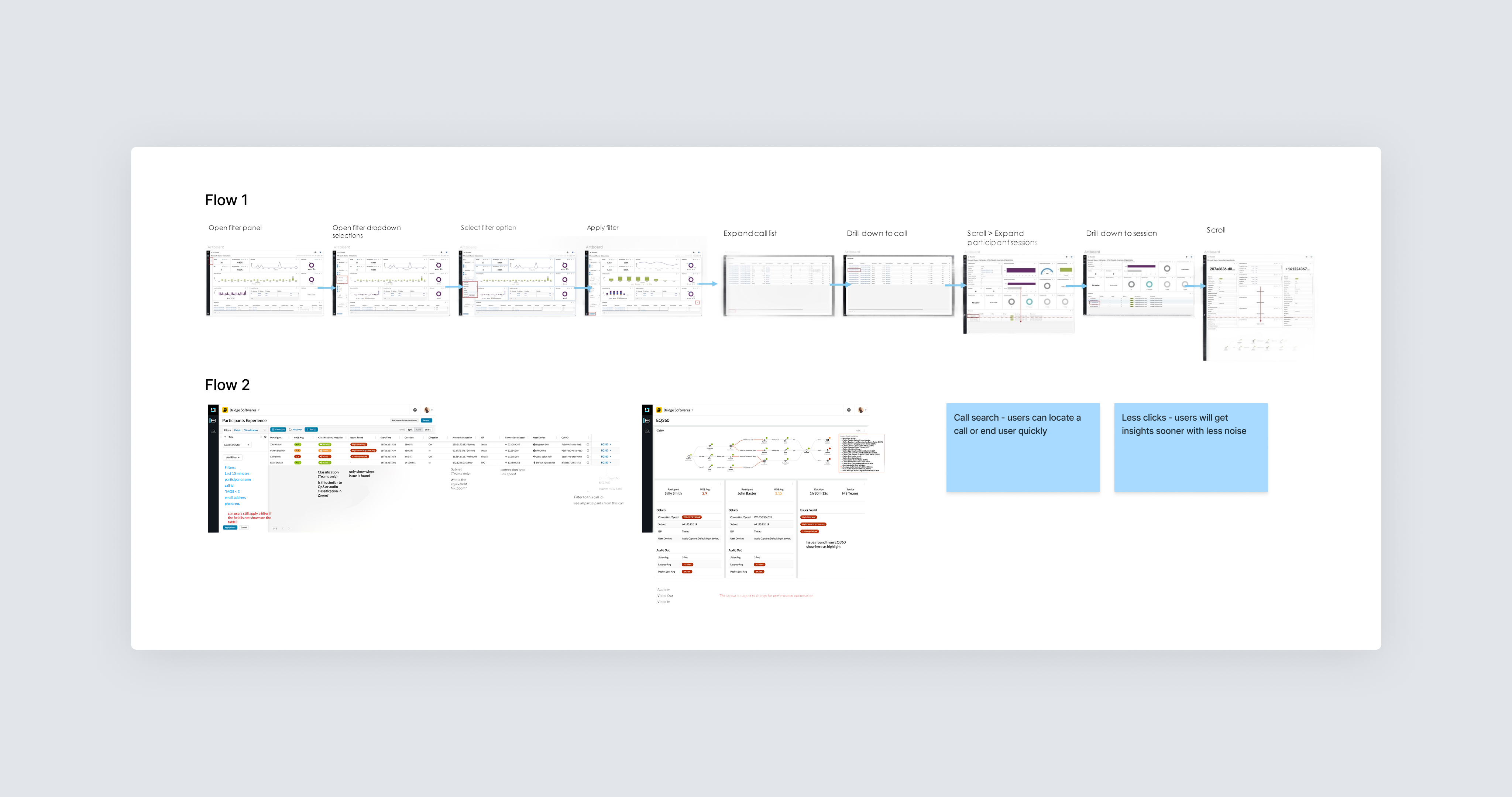 I mapped out key user stories to outline scenarios. Working with product manager and lead engineer, we’ve ideated some possible solutions focused on bigger pain points like triaging and correlating issues. One thing stood out in particular is the ability to visualise calls from end to end. We could highlight where issues are found. We were confident that this would be a potential differentiator from competitors.